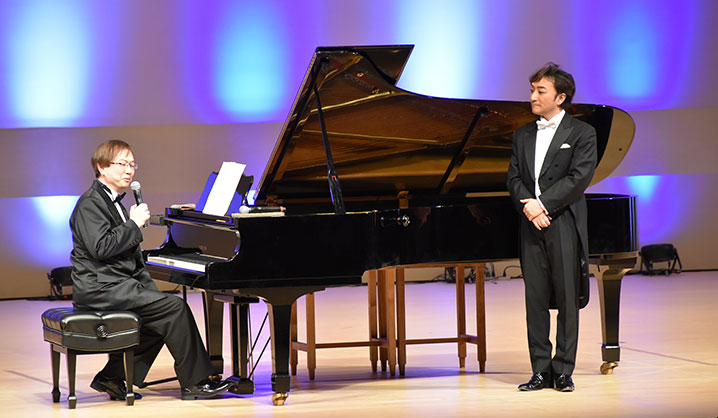 国内外で活躍するオペラ歌手・樋口達哉さん(福島県二本松市出身)とピアノ奏者・金井信さんを迎え、一流音楽家の演奏とトークを通じて、高校生の将来の夢や部活動を応援することを目的に企画しました。